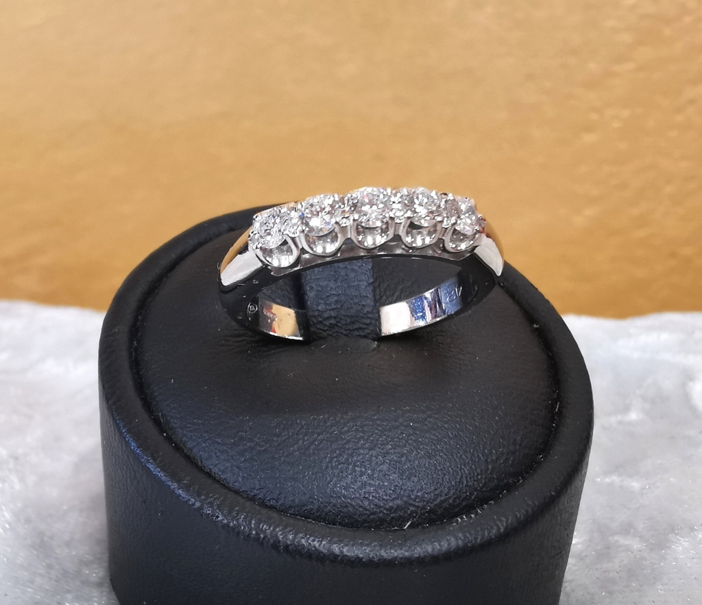 Anello veretta in oro bianco 18 kt e diamanti