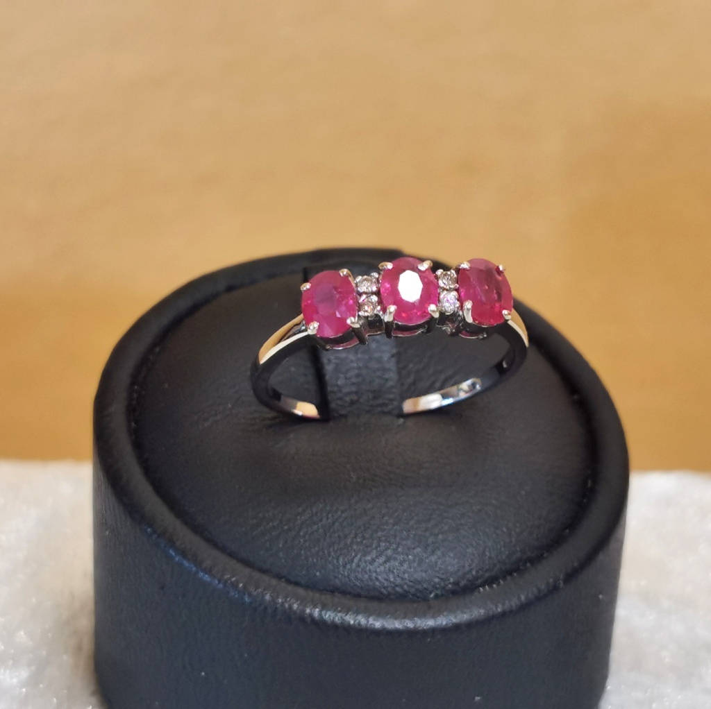 Anello trilogy in oro bianco 18 kt con rubini e diamanti