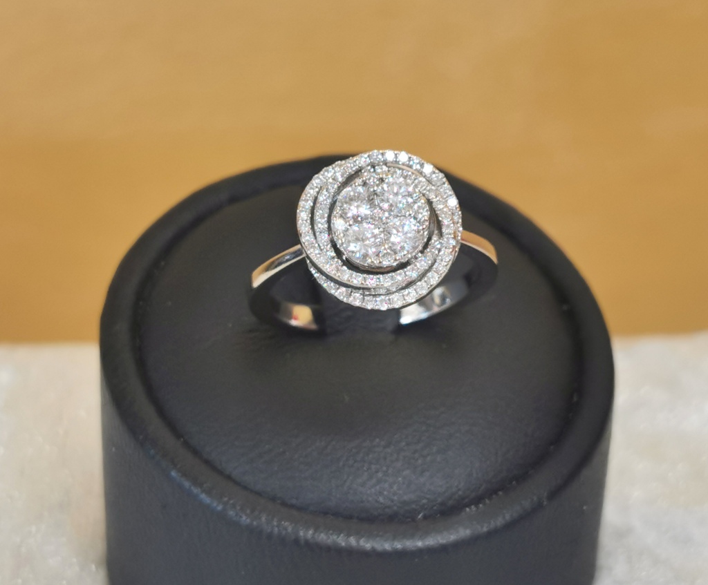 Anello tipo fiore in oro bianco 18 kt con diamanti