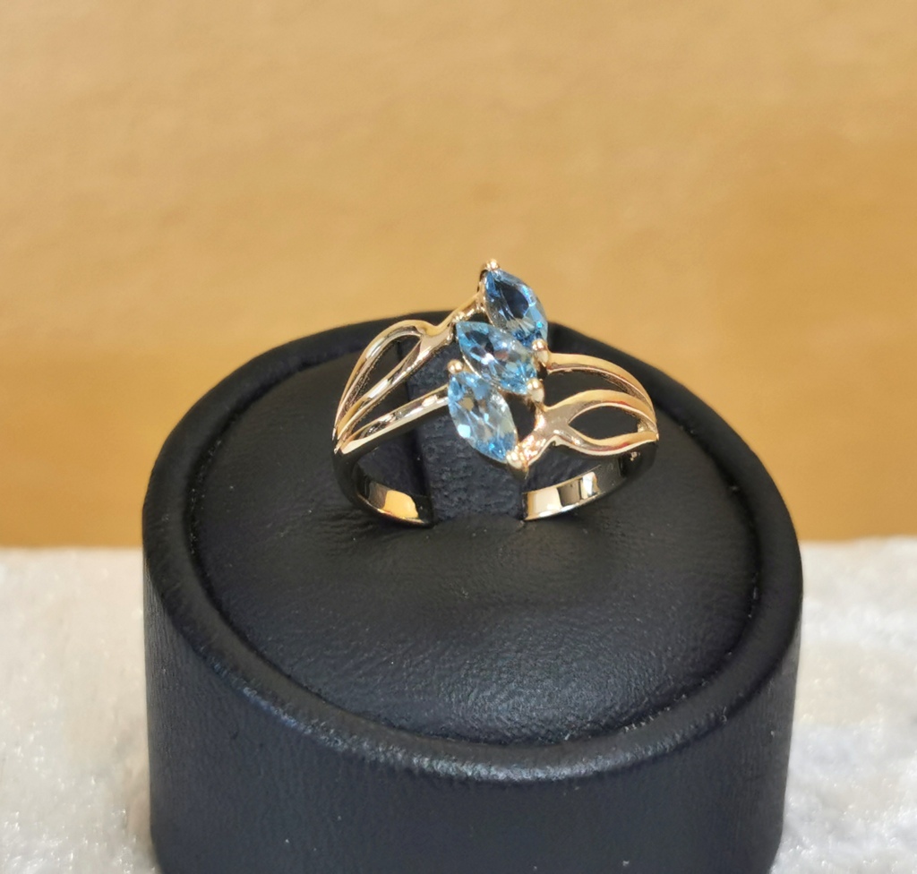 Anello con pietre azzurre in oro giallo 9 kt