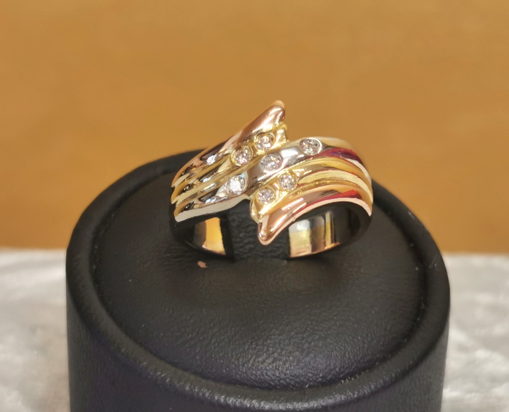 Anello in tre colori oro 18 kt con diamanti