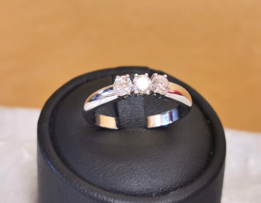 Anello trilogy marca "Re Carlo" in oro bianco 18 kt e diamanti