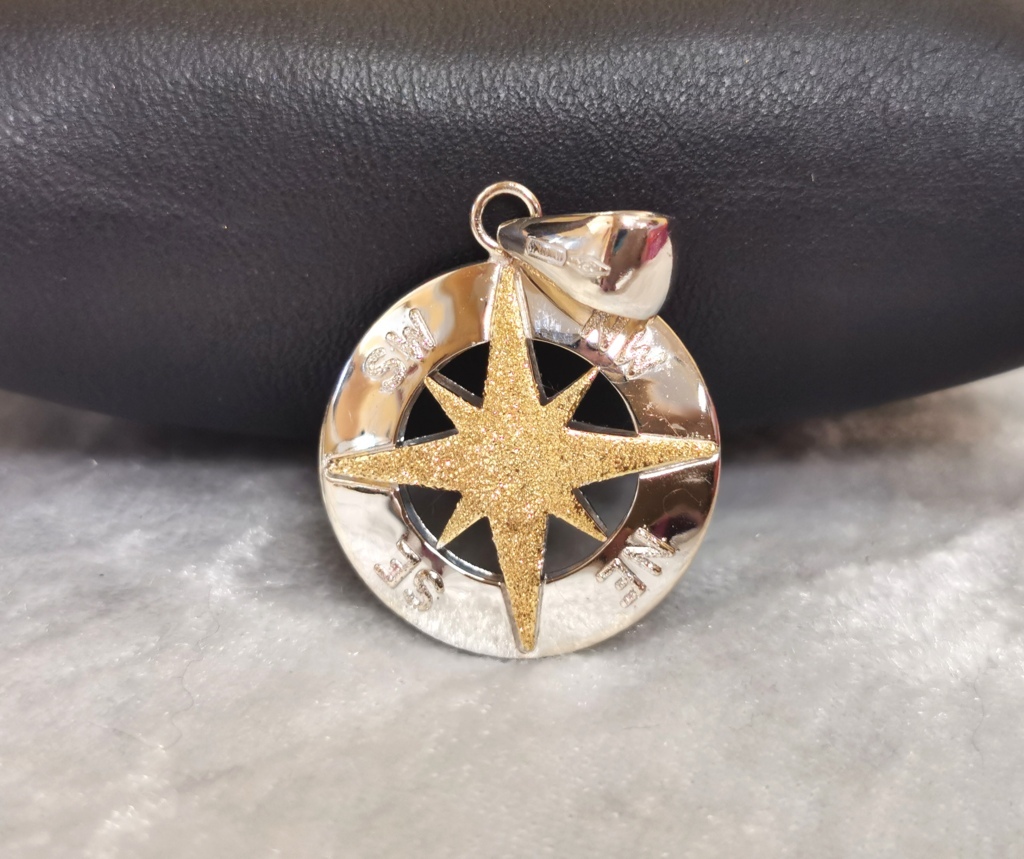 Ciondolo rosa dei venti in oro giallo e bianco 18 kt