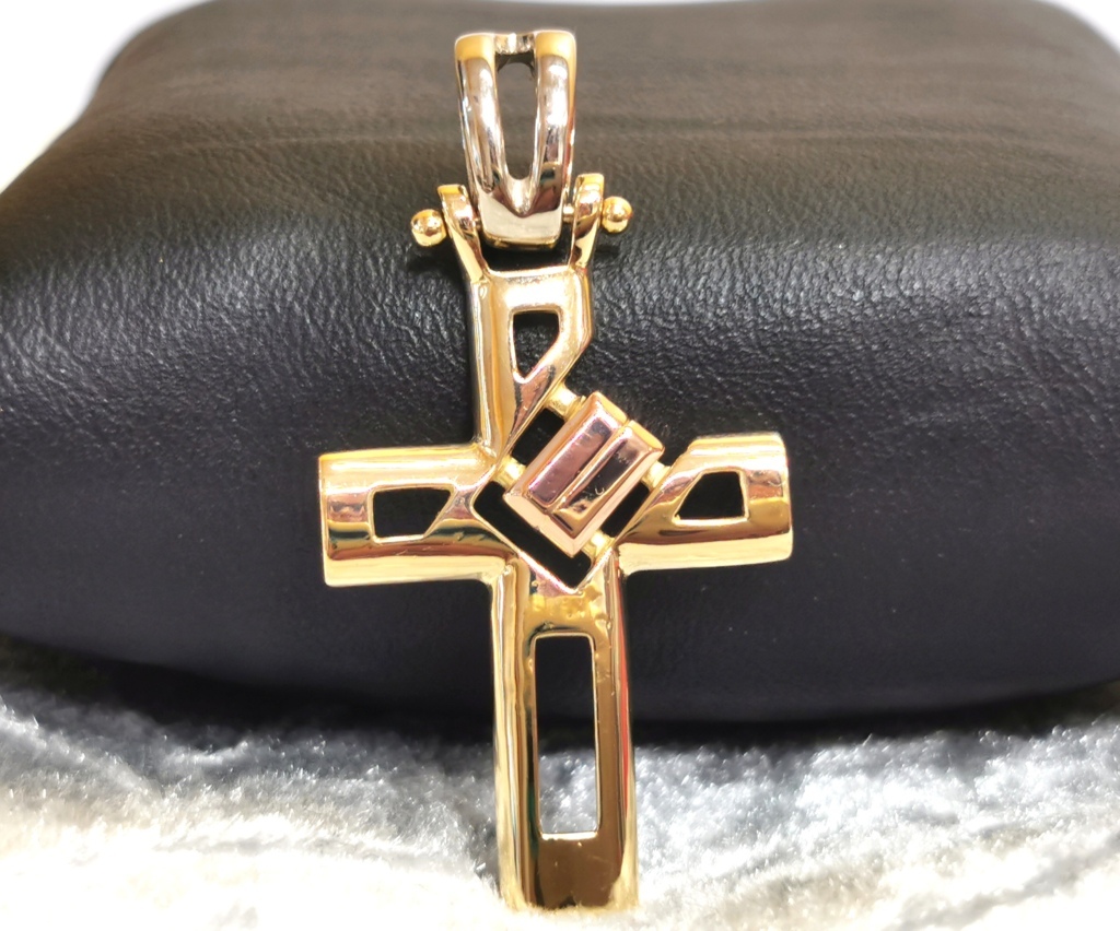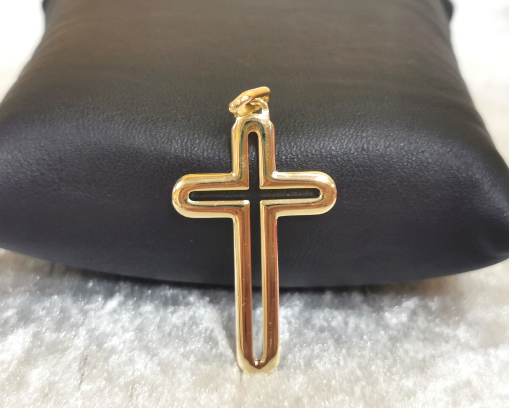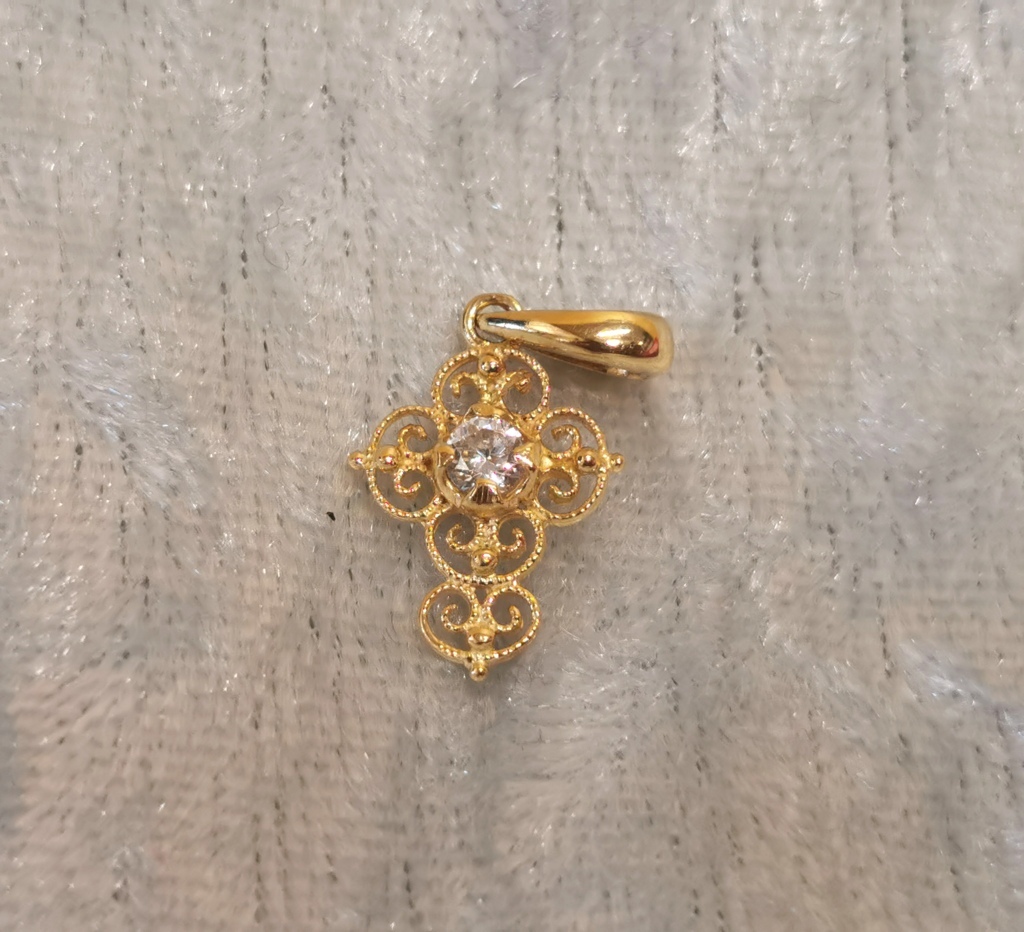 Ciondolo croce filigranata con zircone in oro 18 kt