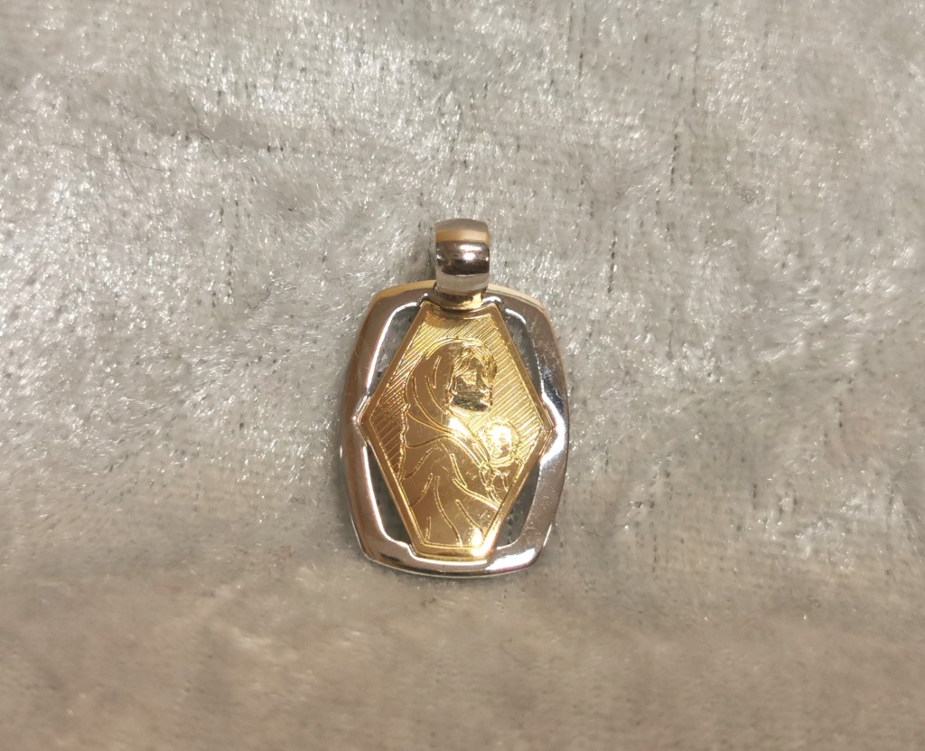 Ciondolo con madonnina in oro giallo e bianco 18 kt
