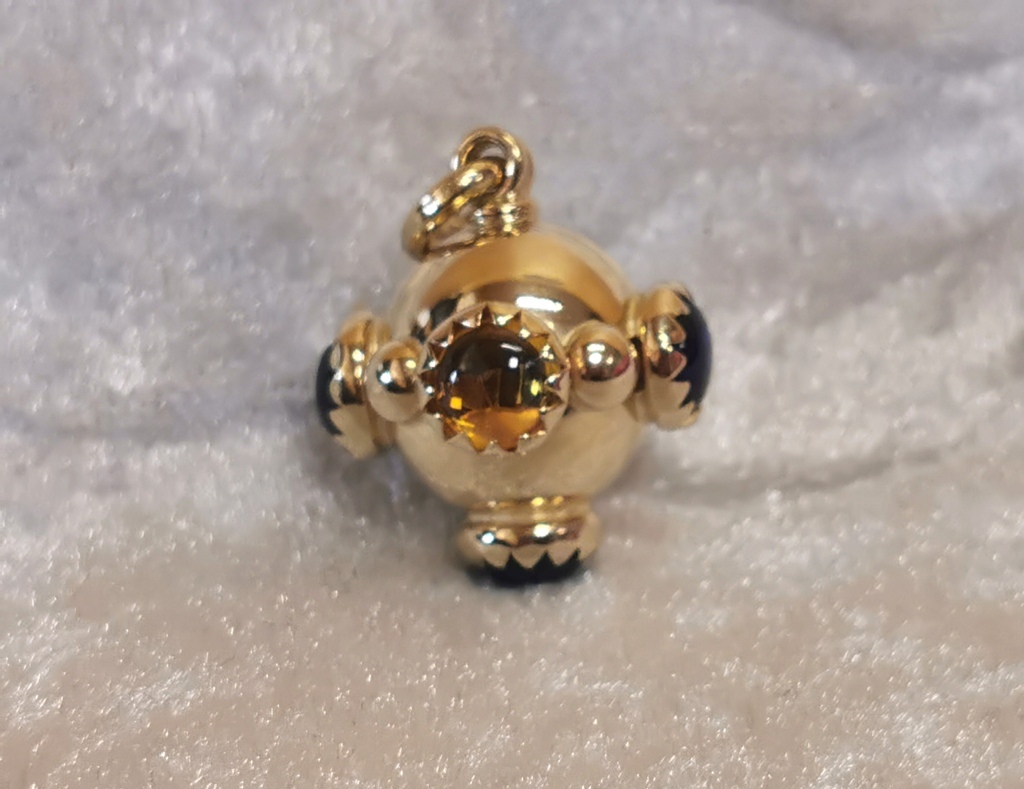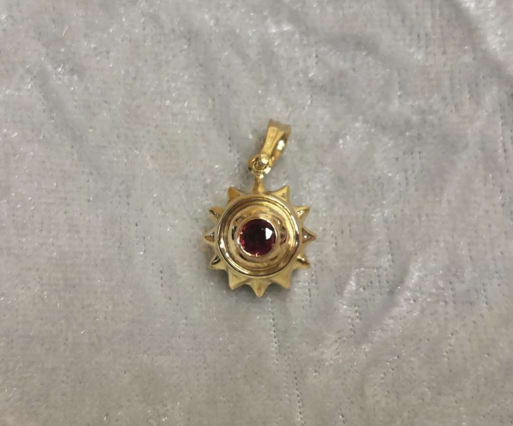 Ciondolo con sole in oro 18 kt da una parte e un rubino nel retro
