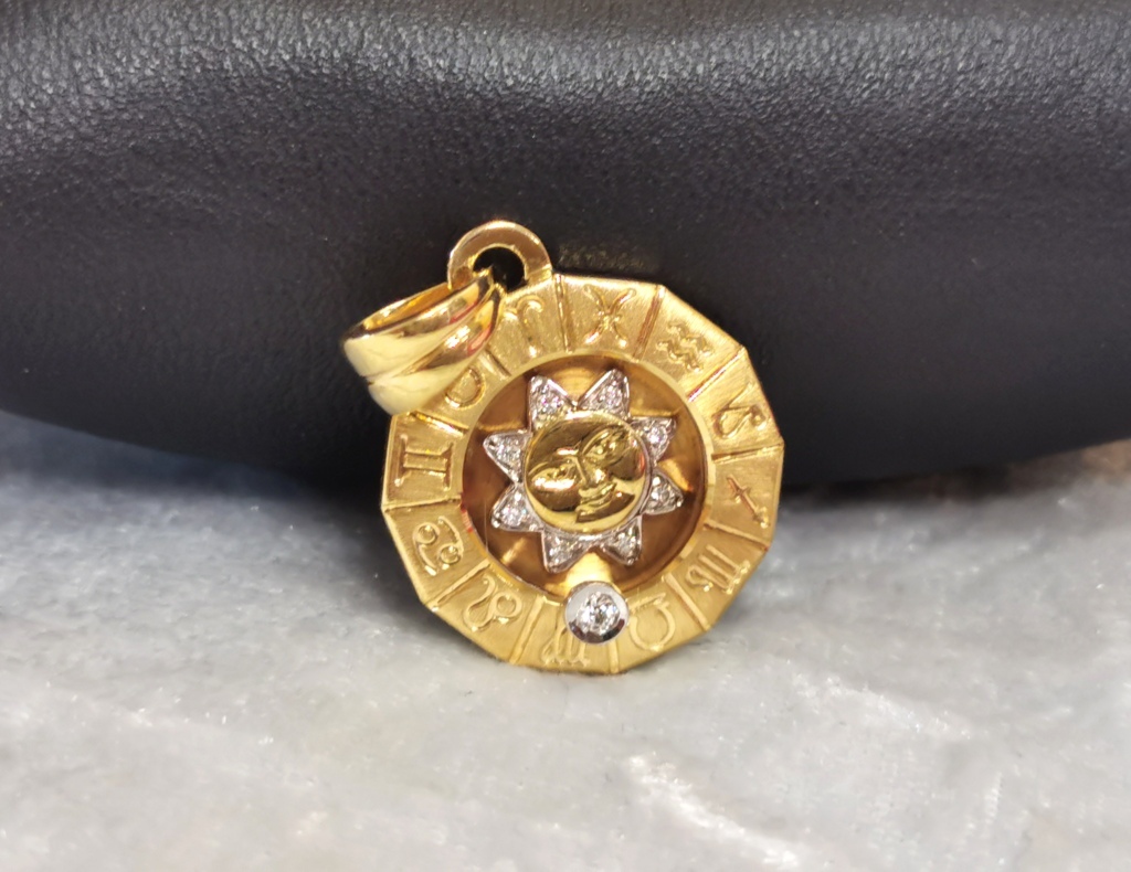 Ciondolo con segni zodiacali in oro 18 kt e diamanti
