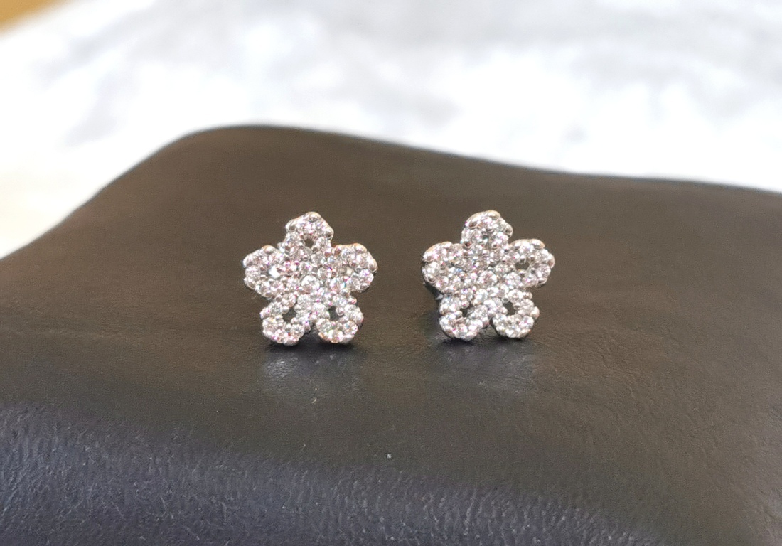 Orecchini a fiore in oro bianco 18 kt con zirconia