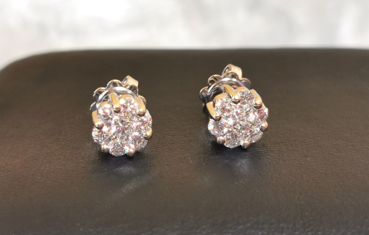 Orecchini a fiore in oro bianco 18 kt con diamanti