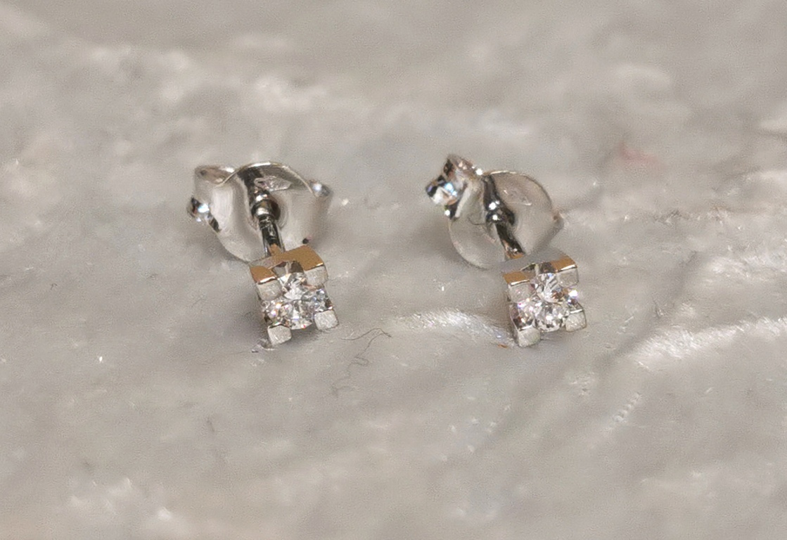 Orecchini punto luce in oro bianco 18 kt e diamanti