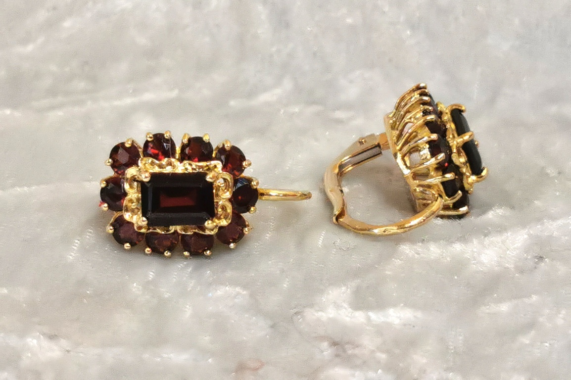 Orecchini clip e perno in oro giallo 18 kt con granato