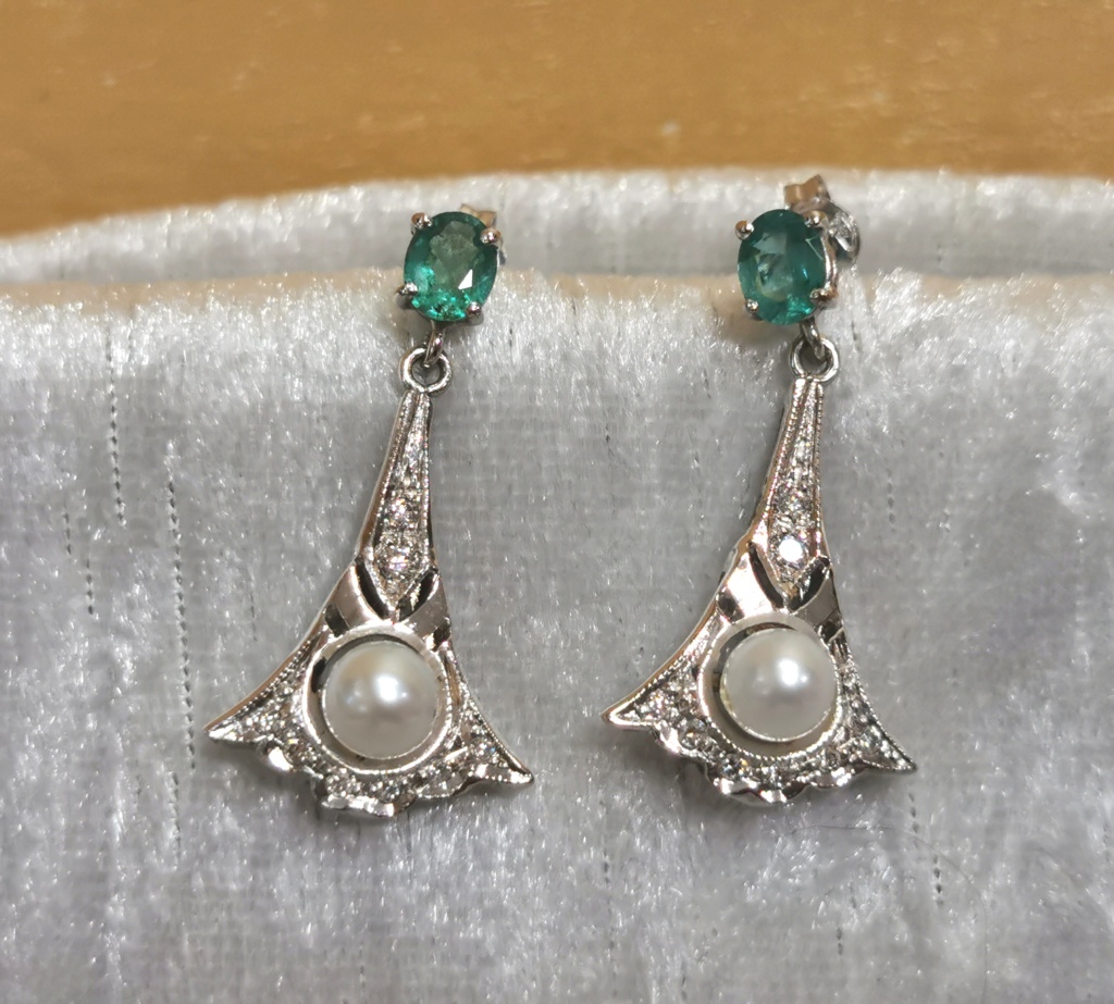 Orecchini in oro bianco 9 kt con smeraldi e diamanti
