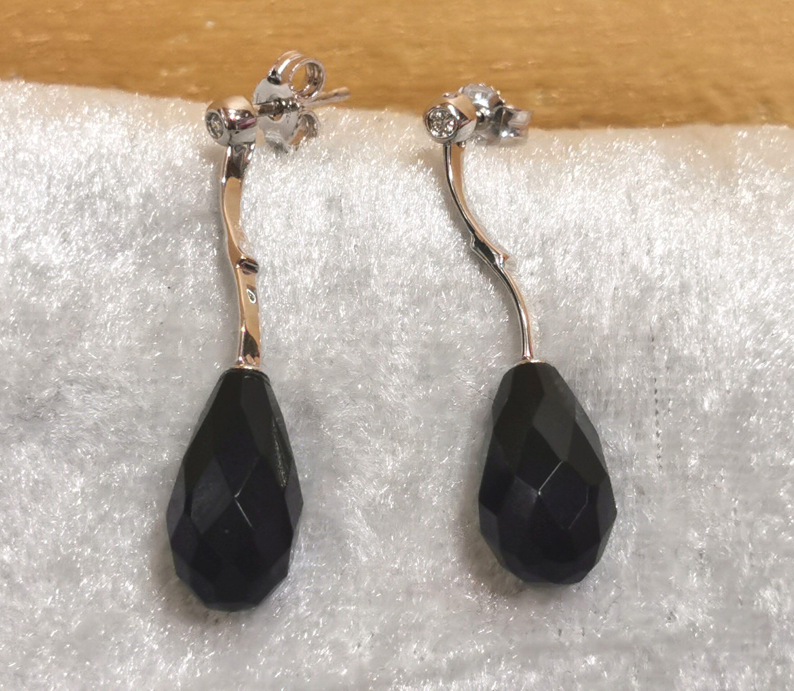 Orecchini in oro bianco 18 kt con onice e diamanti