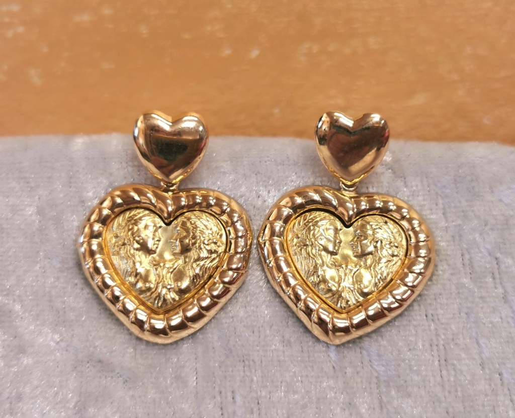 Orecchini pendenti a cuore con donne raffigurate in oro 18 kt