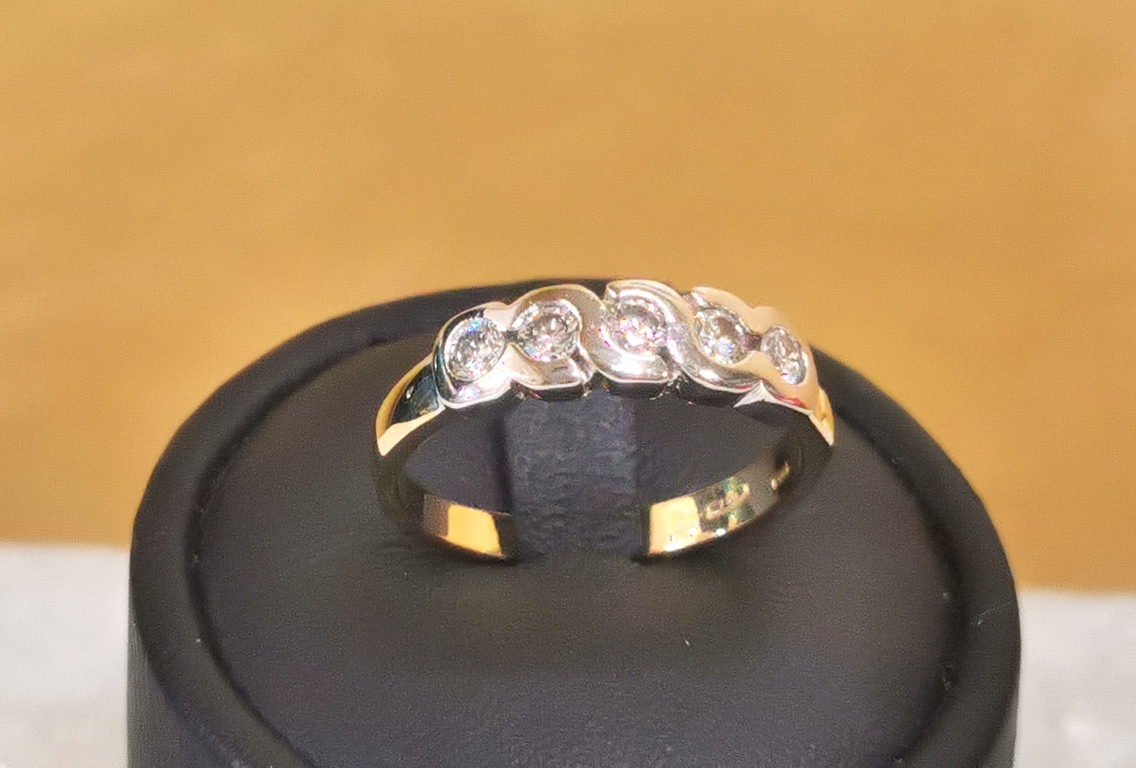 Anello riviere in oro giallo e bianco 18 kt con diamanti