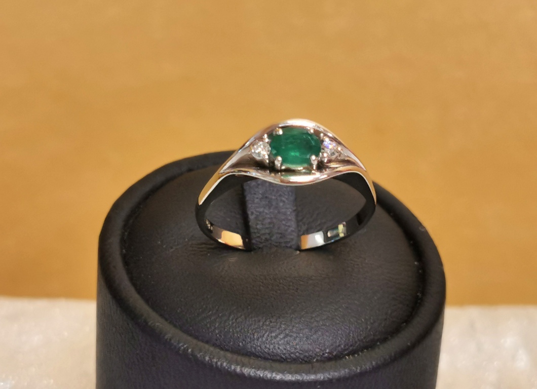 Anello in oro bianco 18 kt con smeraldo e diamanti
