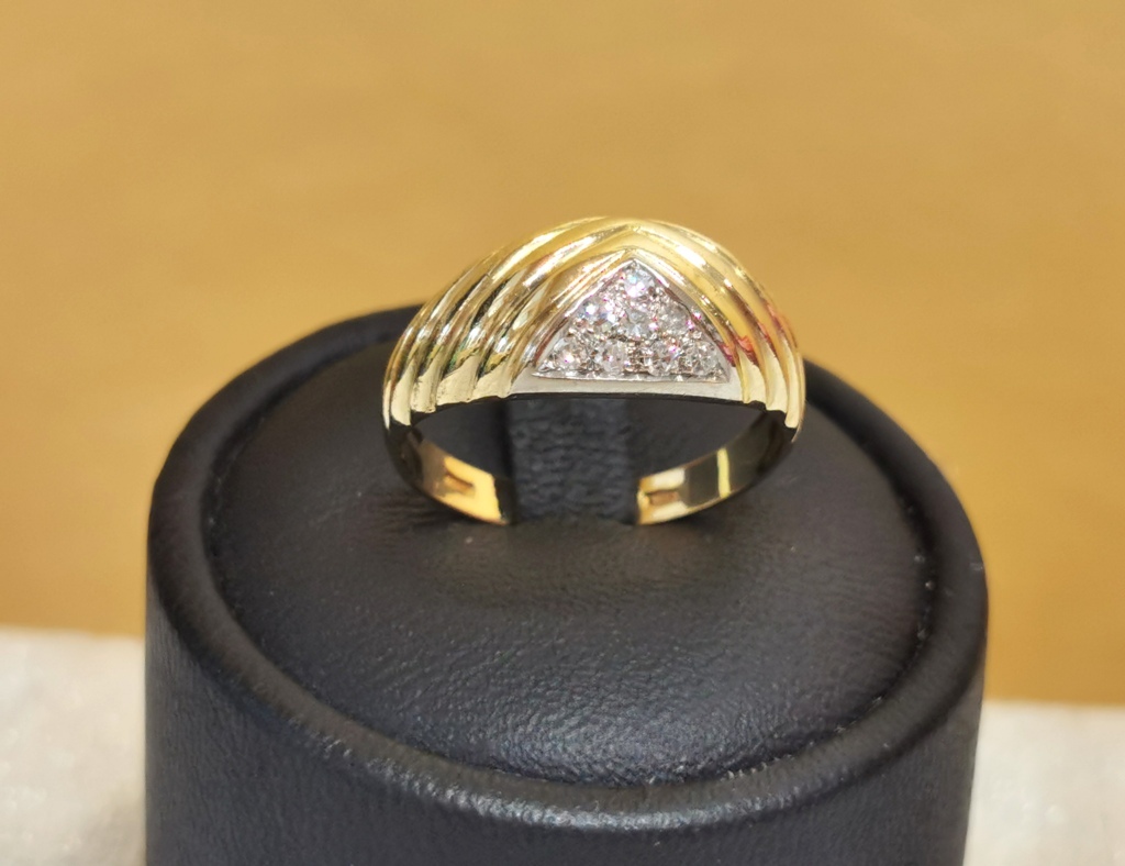 Anello in oro giallo 18 kt con inserto triangolare con diamanti