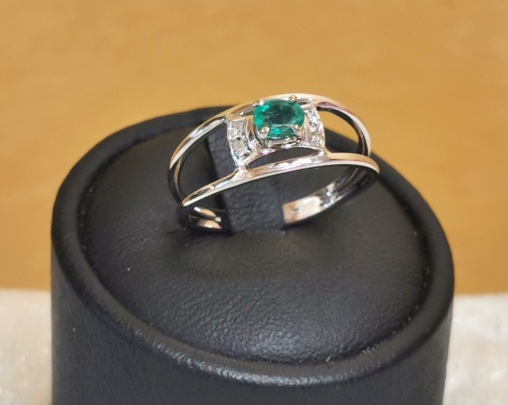 Anello in oro bianco 18 kt gr 2.7 con smeraldo cts 0.20 e diamanti cts 0.02 mis 17