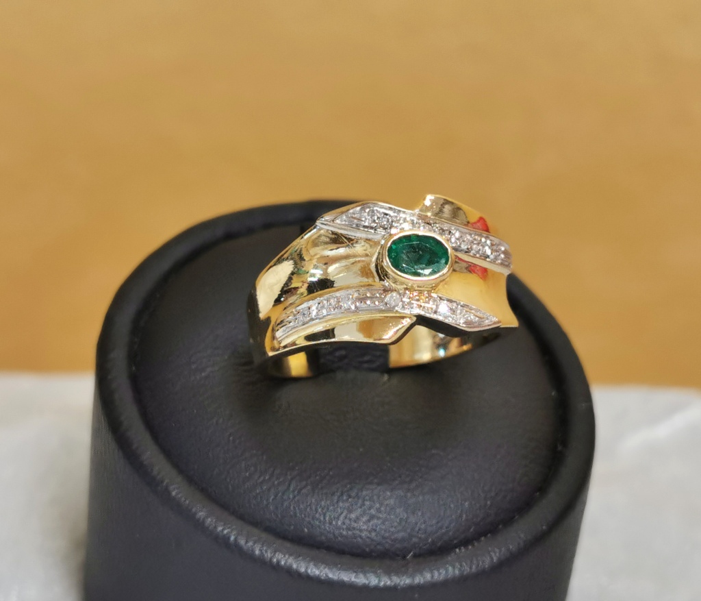 Anello in oro giallo 18 kt con smeraldo e diamanti