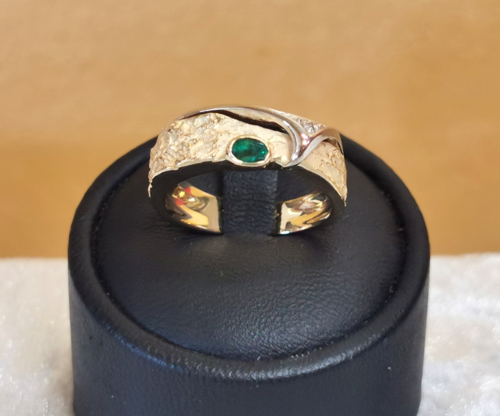 Anello in oro giallo 18 kt con smeraldo e diamanti