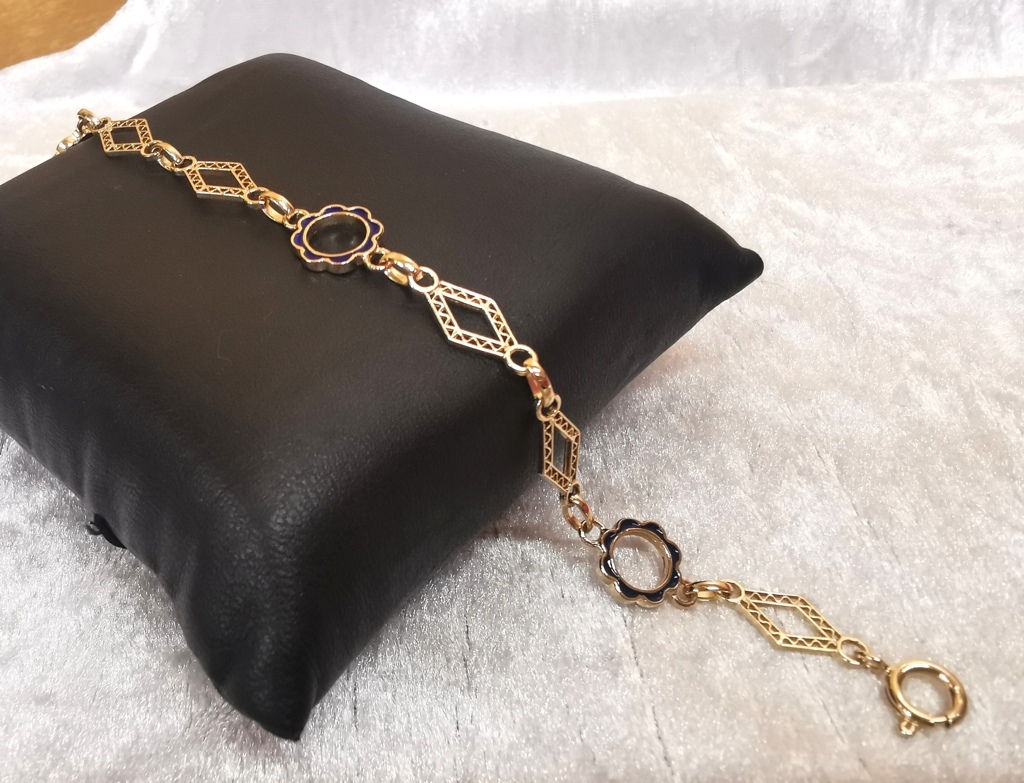 Bracciale in oro 18 kt con fiori smaltati colore blu