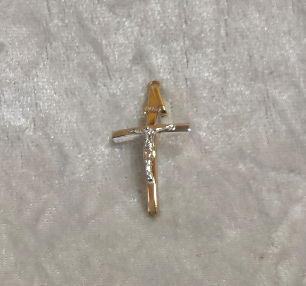 Ciondolo croce in oro 18 kt a due colori