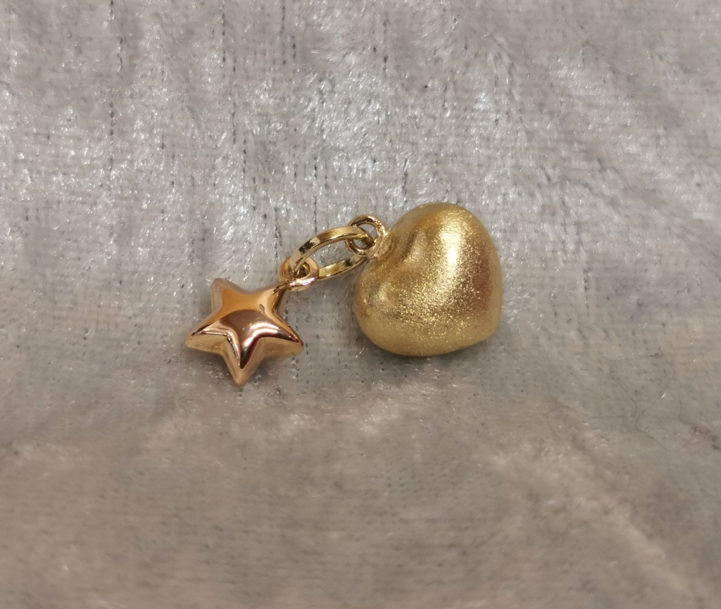 Ciondolo cuore e stella in oro 18 kt gr 1.7 cm 1