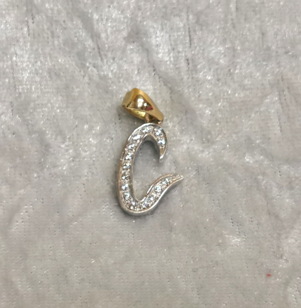Ciondolo lettera C in oro bianco e giallo 18 kt e diamanti