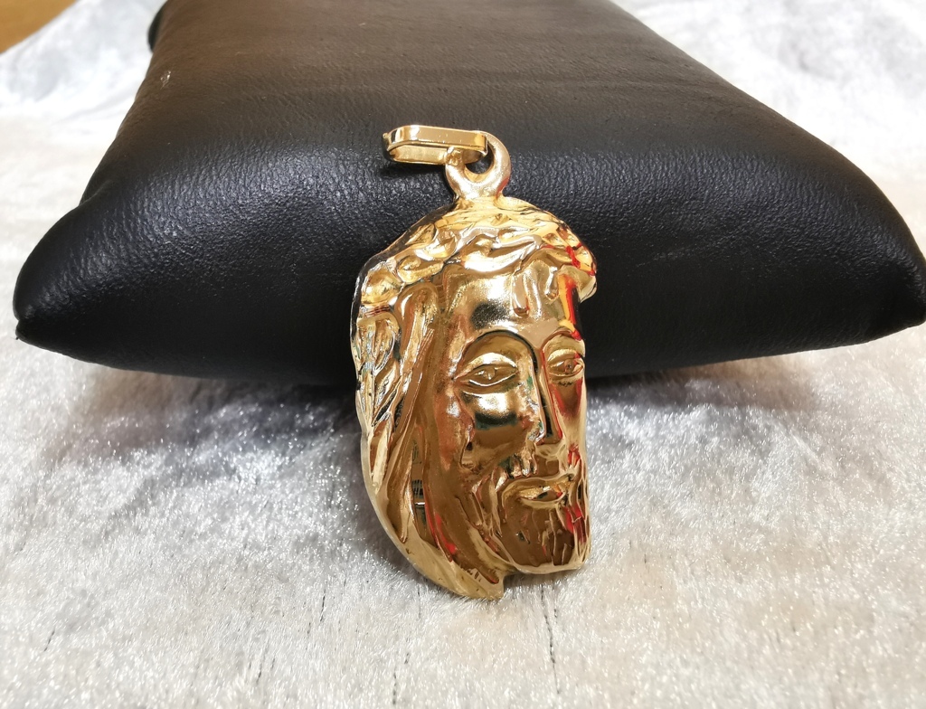 Ciondolo viso Cristo in oro giallo 18 kt gr 7.4 cm 4.5