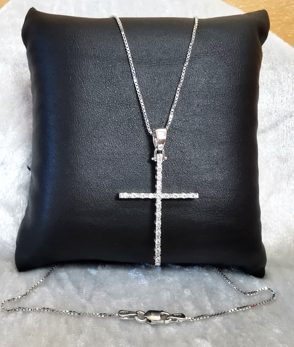 Collana con croce in oro bianco 18 kt e diamanti
