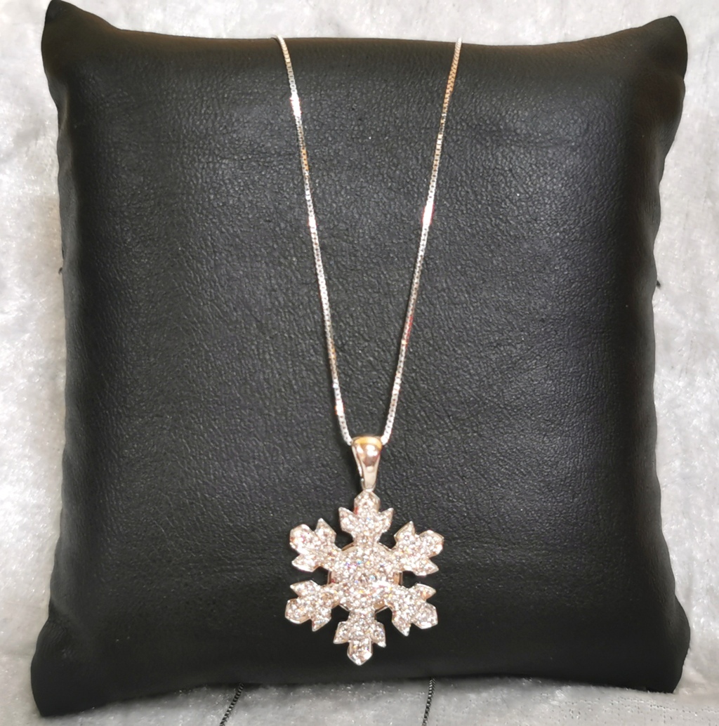 Collana con fiocco di neve oro bianco 18 kt e diamanti